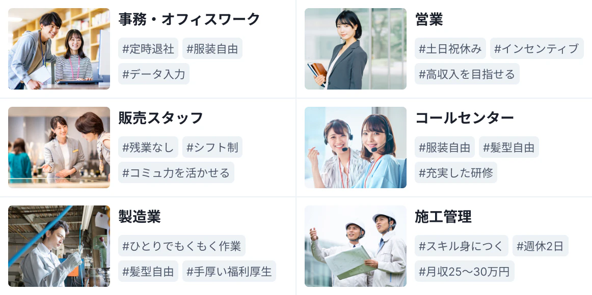 未経験OKの幅広い求人から、あなたにあった働き方に出会えます。