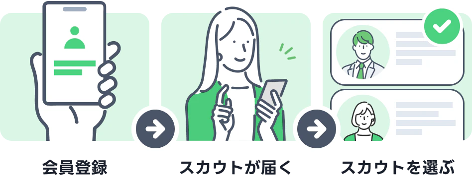 お仕事探しの希望条件をプロフィールに設定すると、あなたのホンネにマッチしたスカウトが届きます。