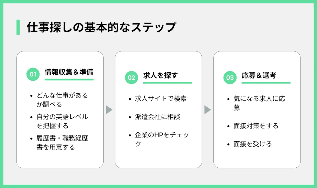 まずは、自分の今の英語レベルに合った仕事から探し始めるのが良いでしょう。働きながら英語力を伸ばしていくことも可能です!