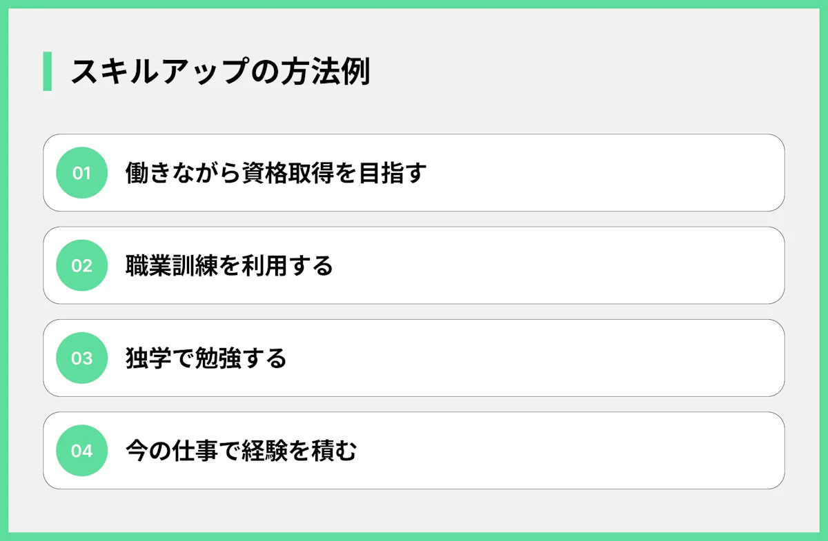 「資格は必須ではないけれど、将来のために何かスキルを身につけたい」と考える方もいるでしょう。スキルアップを目指す方法はいくつかあります。