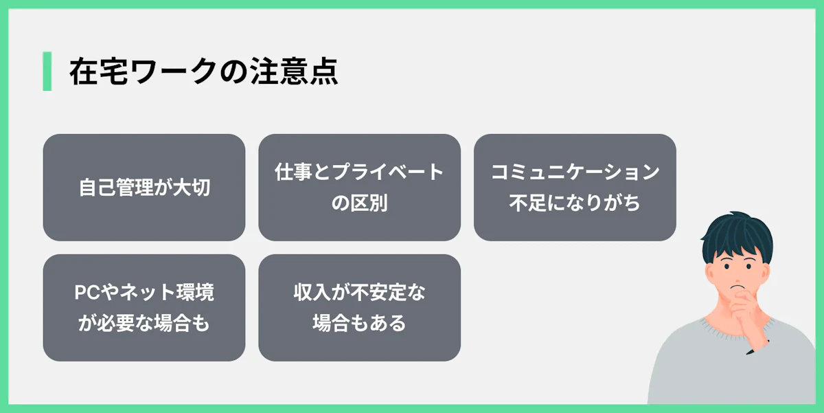 在宅ワークは、時間や場所に縛られずに働けるという大きなメリットがあります。一方で、自己管理能力が求められたり、仕事とプライベートの区別がつきにくかったりするという側面もあります。