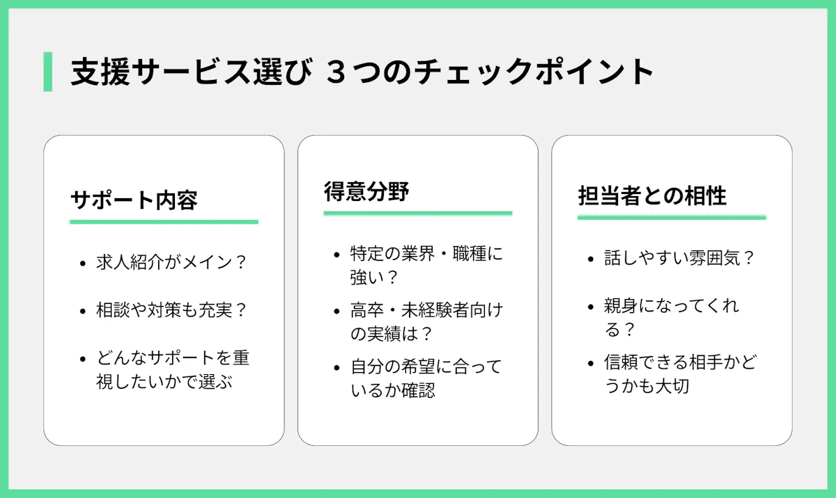 「特に希望はないけど、高卒からの就職をしっかりサポートしてほしい」という場合は、高卒者や未経験者の支援実績が豊富なエージェントを選ぶのがおすすめです。