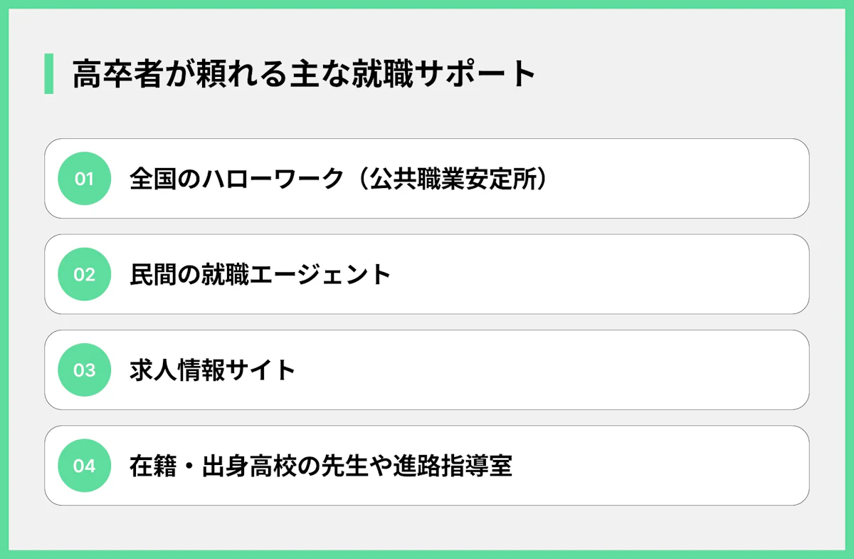 高卒者の就職活動をサポートしてくれる仕組みやサービスは、実はたくさんあります。