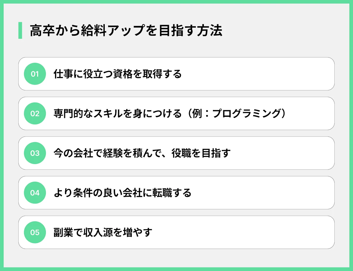 ですが、高卒からでも、努力次第で給料アップを目指すことは十分に可能です。