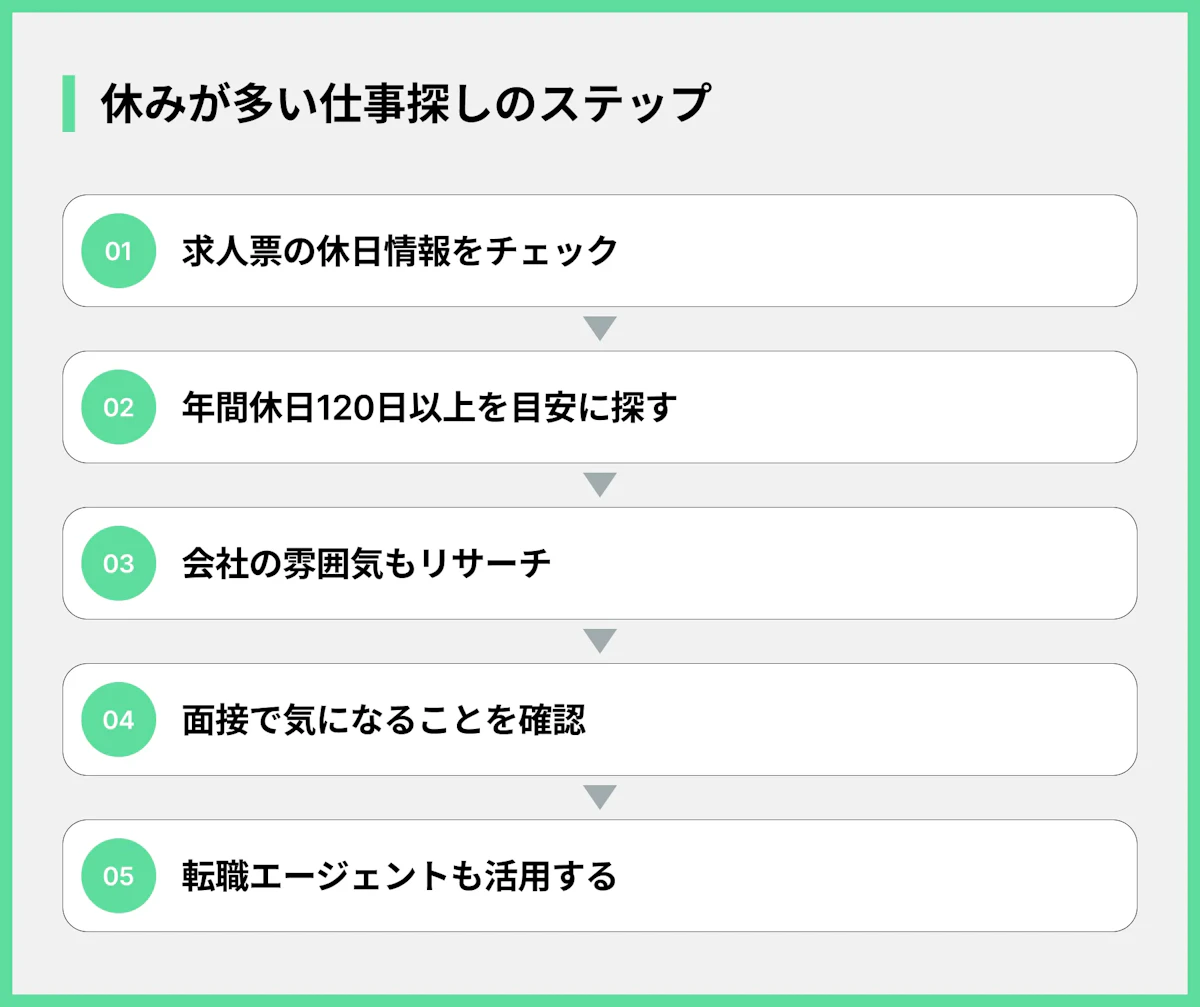 ここでは、休みが多くて自分に合った仕事を見つけるための、具体的な探し方のコツを紹介します。