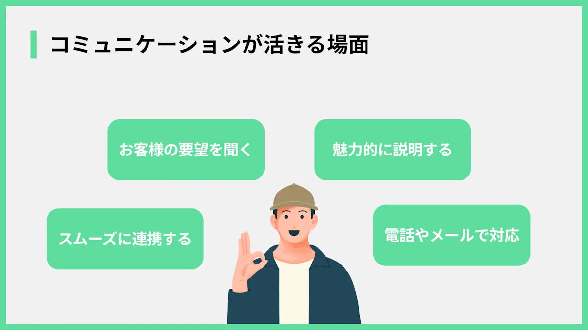 「コミュニケーション能力」というと難しく感じるかもしれませんが、特別な話術が必要なわけではありません。大切なのは、