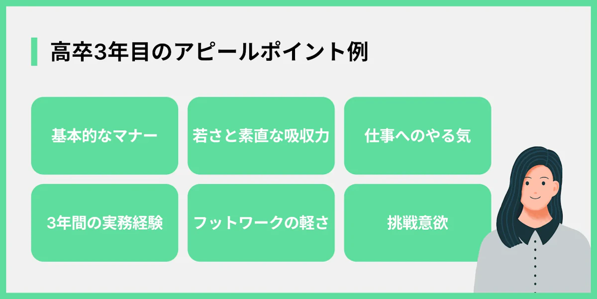 - 高卒3年目は「第二新卒」として、若さとポテンシャルが武器になる。