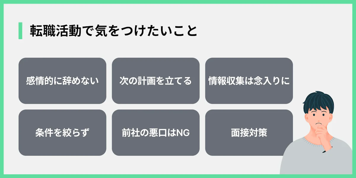 転職は、あなたの未来をより良くするための大切なステップです。だからこそ、いくつか気をつけておきたいポイントがあります。