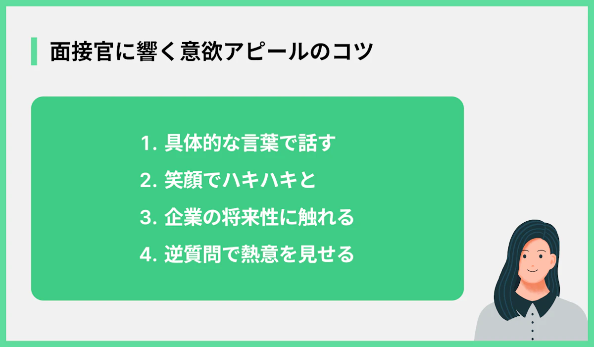 「やる気はあります!」とただ言うだけでは、働く意欲はなかなか伝わりません。言葉だけでなく、具体的なエピソードや行動で示すことが大切です。以下の方法で、効果的にアピールしましょう。