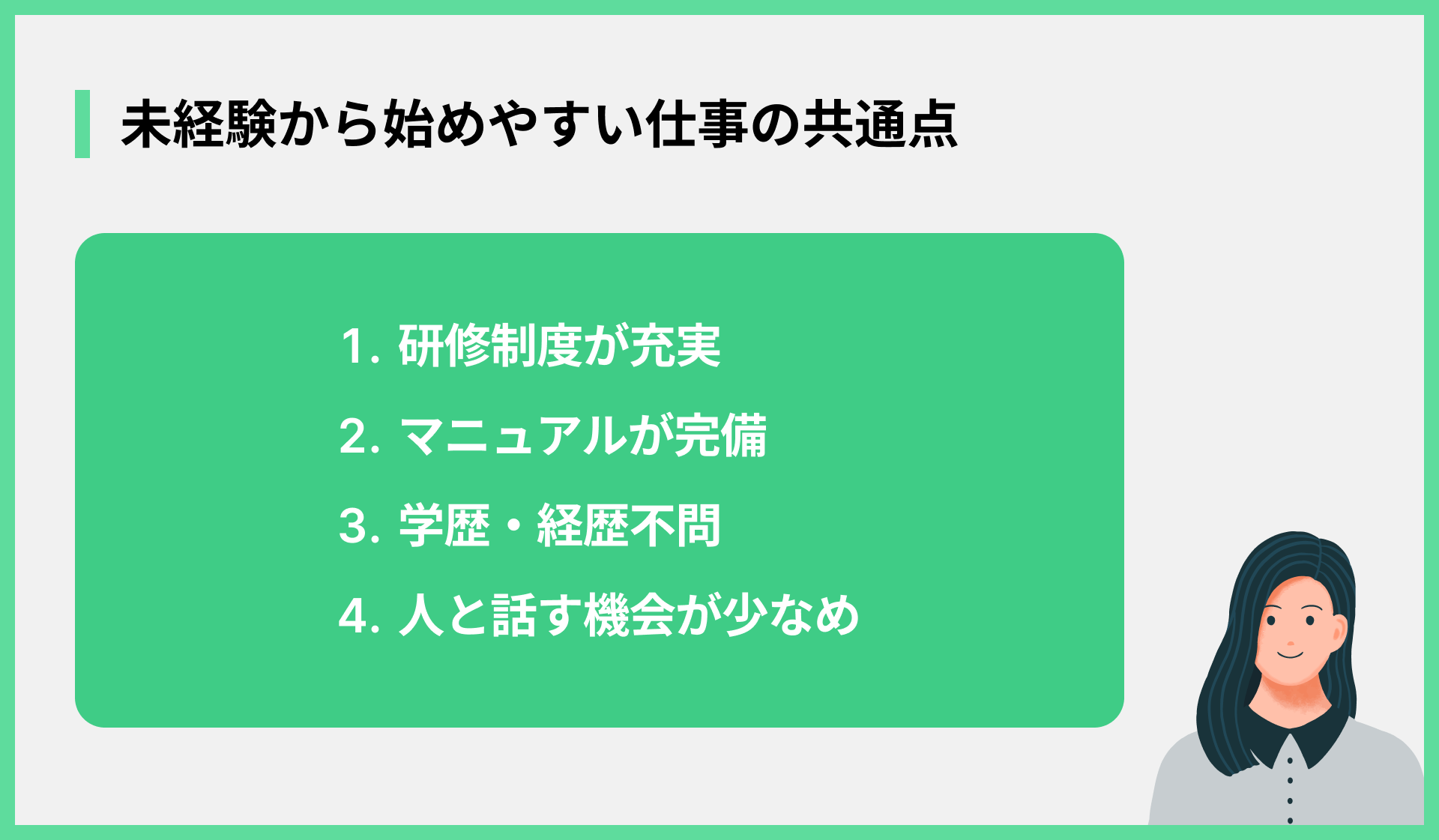 - 未経験からでも挑戦しやすい仕事
