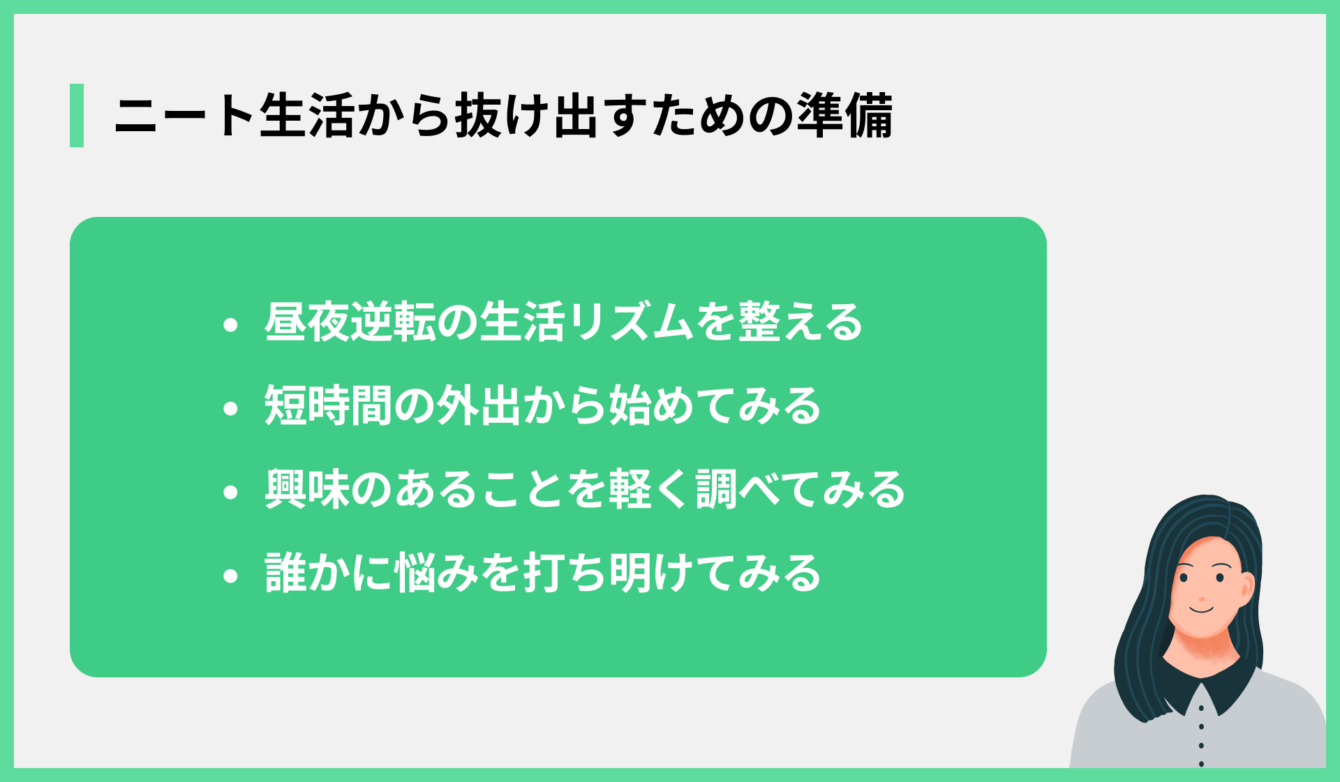 - ニートの女性が抱えやすい不安