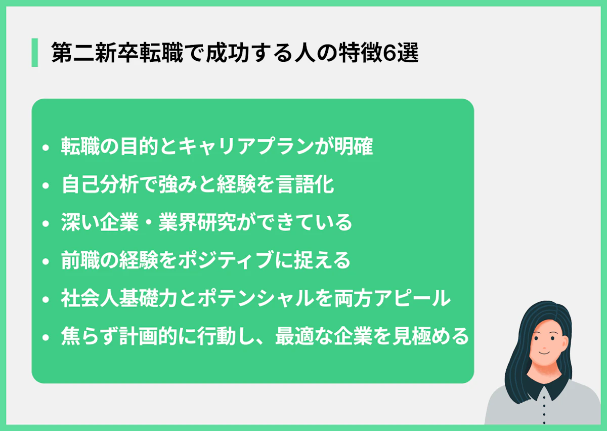 第二新卒の転職を成功させる人は、まず「何のために転職するのか」という目的が明確です。それは「専門性を高めたい」「より社会貢献性の高い仕事がしたい」といったポジティブな動機であり、将来のキャリアプランと一貫性があります。彼らは、今回の転職を単なる「職場変更」ではなく、自身のキャリアにおける重要なステップと位置づけています。この明確な目的とキャリアプランがあるからこそ、企業選びの軸がぶれず、面接でも「なぜこの会社でなければならないのか」を情熱と論理を持って語ることができ、採用担当者を納得させることができるのです。