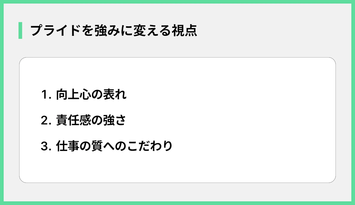 高いプライドと上手く付き合い、強みに変えていくための具体的な方法があります。以下の3つのステップで解説します。