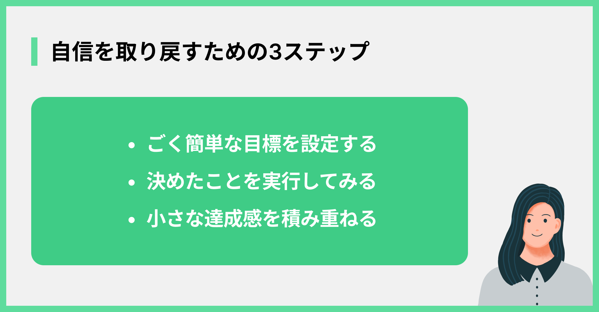 いきなり「正社員になる」という大きな目標ではなく、ごく簡単な目標から立ててみましょう。「1日に10分だけ求人サイトを見る」「気になる企業を1社リストアップする」といったことです。小さな成功体験を積み重ねることで、「自分にもできる」という感覚が少しずつ回復し、行動への抵抗が和らぎます。この小さな一歩が、自信を取り戻すための重要なトレーニングになります。