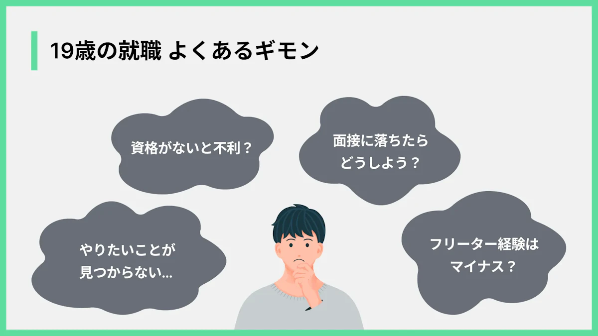 最後に、19歳の方が就職活動をする上で、よく疑問に思うことについてQ&A形式でお答えします。