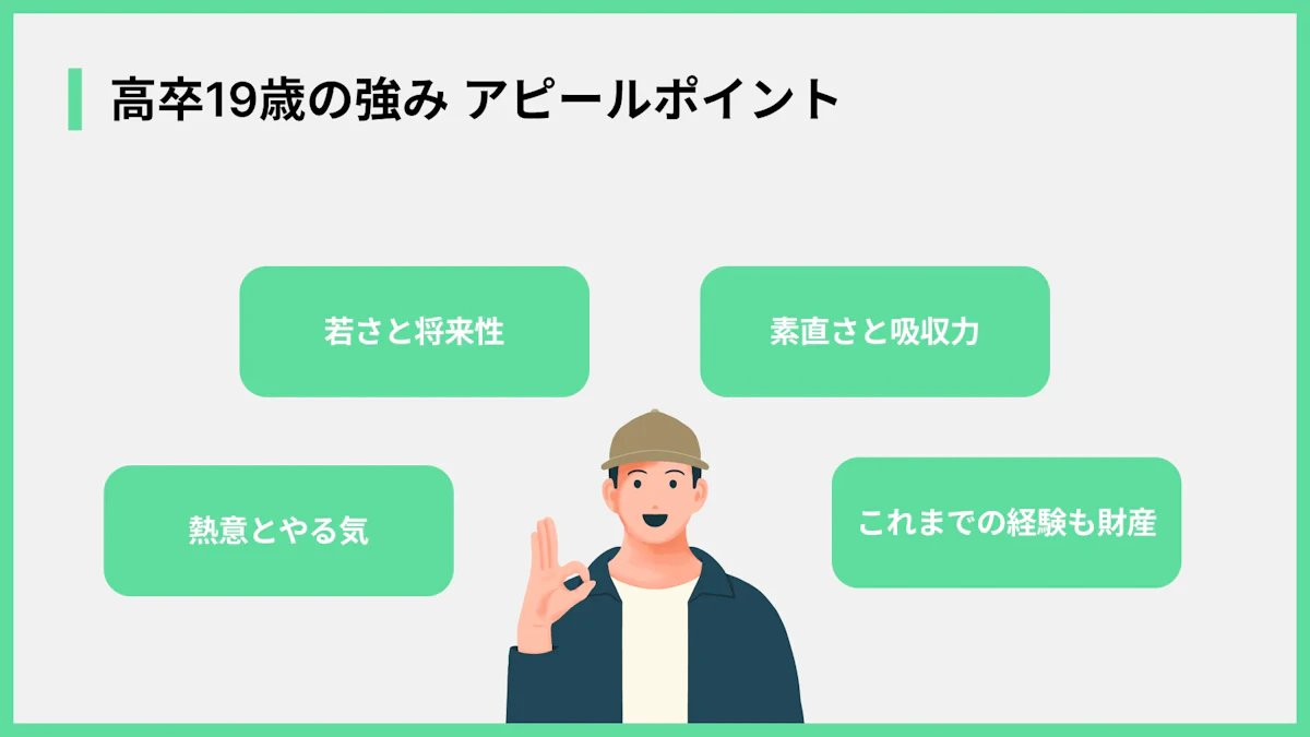 そんな風に不安に思う必要はありません!高卒19歳だからこそ持っている「強み」がたくさんあります。面接では、その強みを自信を持ってアピールしましょう。