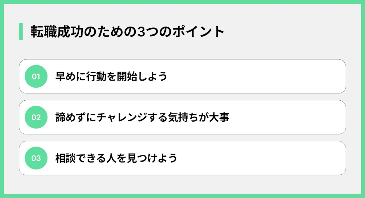 この記事を読めば、転職への不安が軽くなり、「よし、やってみよう!」と前向きな気持ちになれるはずです。一緒に、あなたらしい働き方を見つけるための一歩を踏み出しましょう!