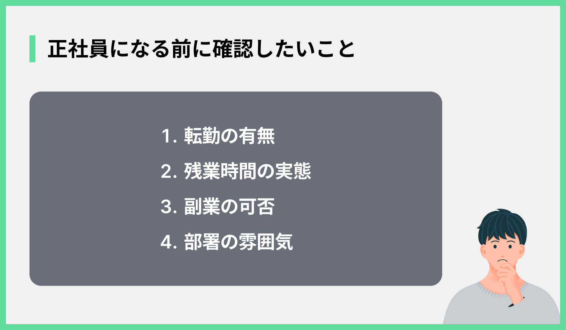 正社員になることには多くのメリットがありますが、一方で注意しておきたい点もあります。考えられるデメリットは以下の通りです。