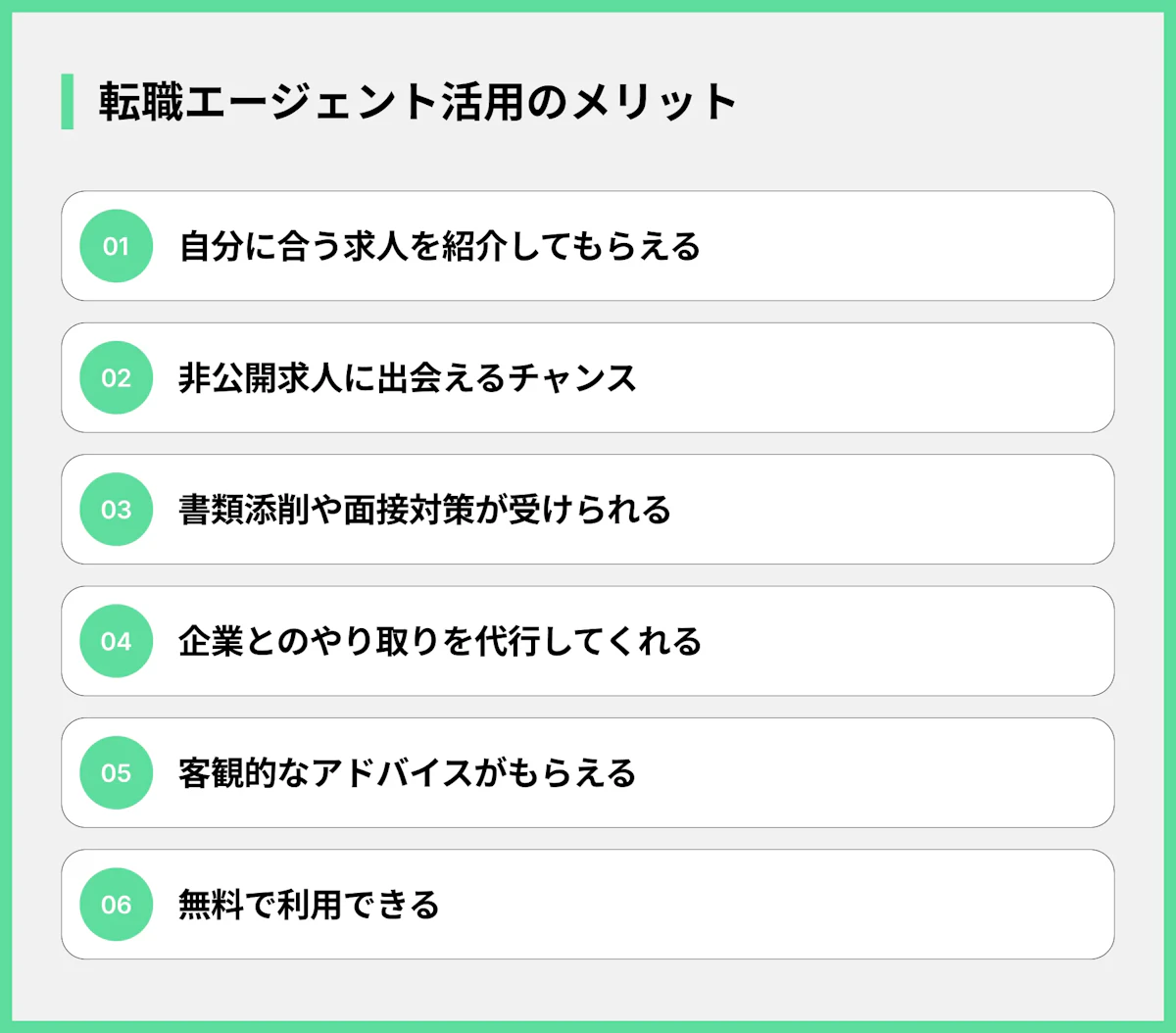転職エージェントを利用すると、たくさんのメリットがあります。