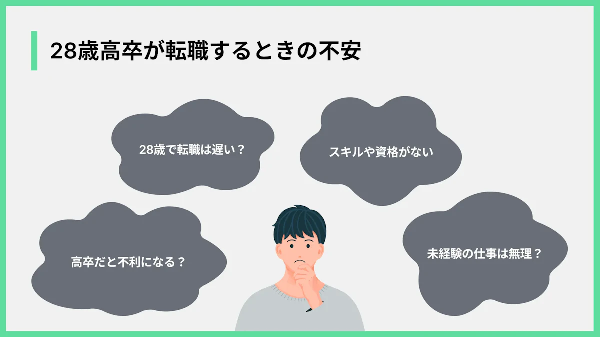 特に高卒で、28歳という年齢を迎えると、「転職するにはもう遅いんじゃないか」「学歴で不利になるんじゃないか」と、一歩踏み出すのをためらってしまうかもしれません。