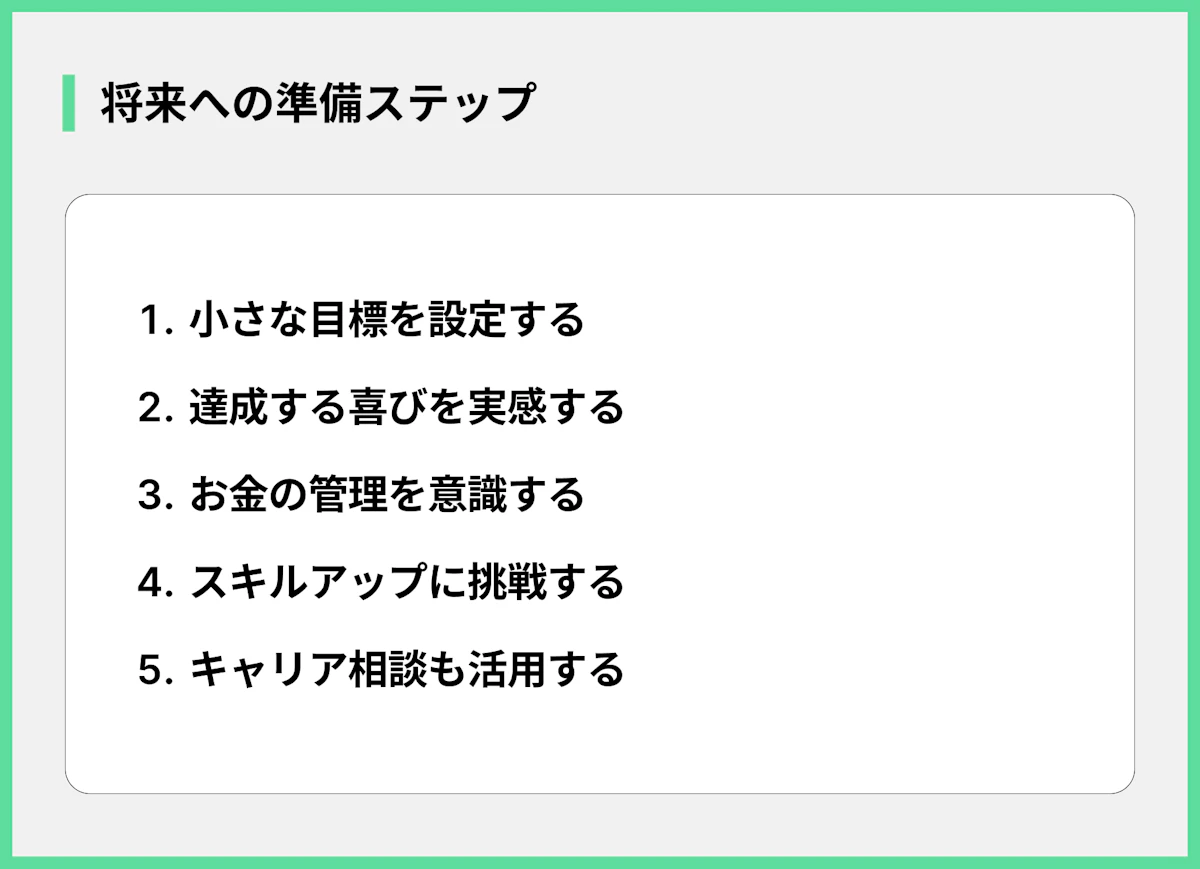 フリーター生活を楽しみながらも、将来のために今から準備できることがあります。具体的には以下の行動を意識してみましょう。