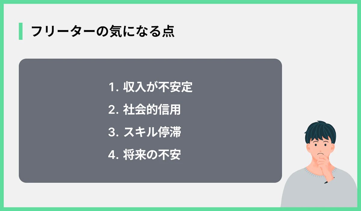 楽しい面やメリットがある一方で、大卒フリーターには知っておくべきデメリットもあります。主なデメリットは以下の通りです。