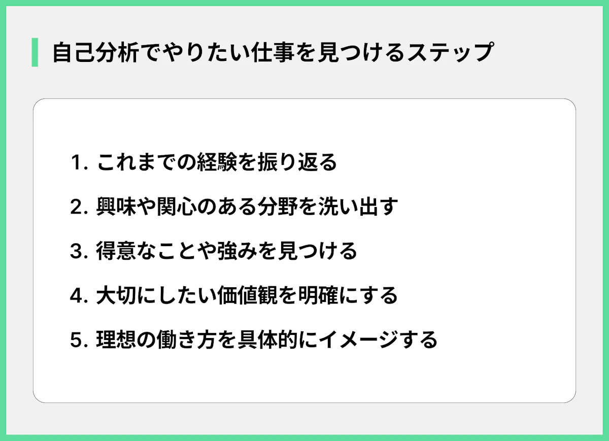 - 自己分析で本当にやりたい仕事を見つけ出す