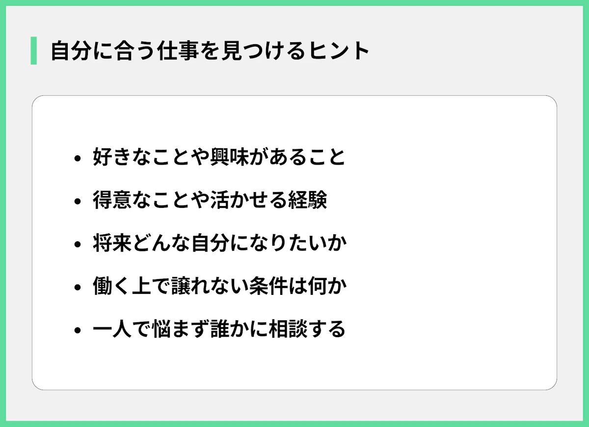 自分の得意なことや好きなこと、興味のある分野で仕事を探してみましょう。例えば、文章を書くのが好きならライティングの仕事、人と話すのが好きなら接客や営業の仕事など、選択肢は無限にあります。視野を広げて、自分にピッタリの稼ぎ方や仕事を見つけることが大切です。