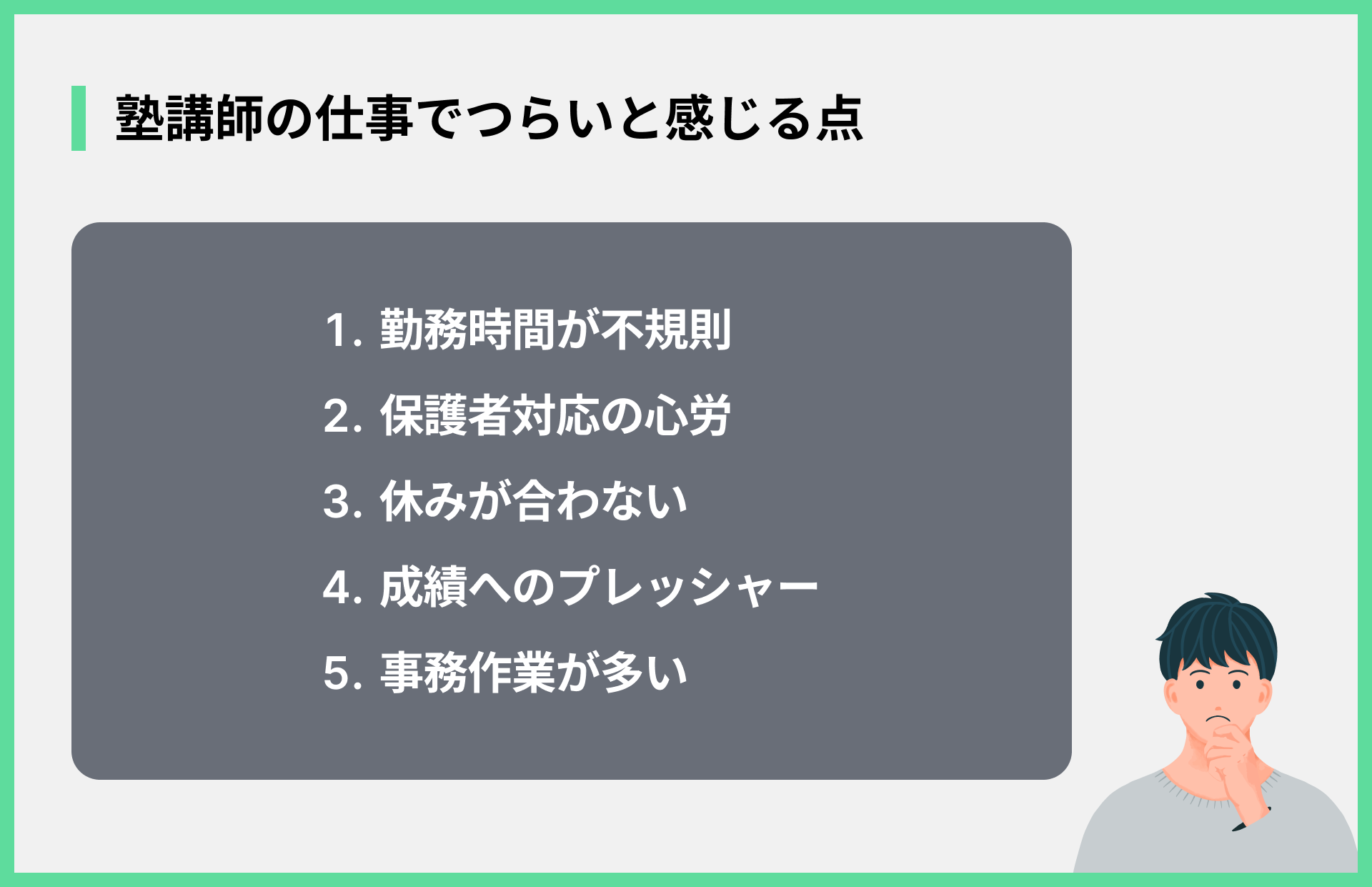 - 塾講師の仕事がつらいと感じる具体的な理由