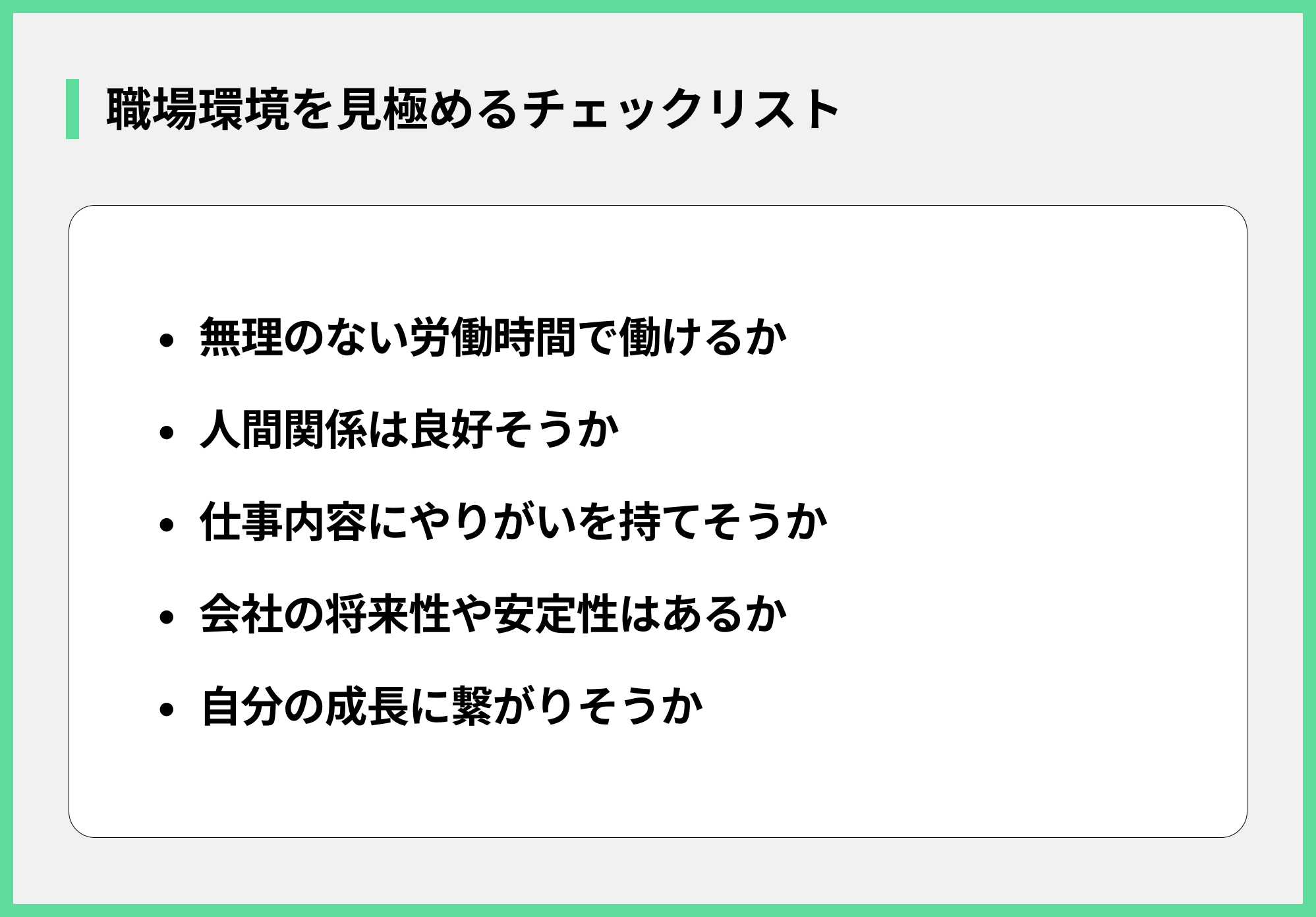 - 会社の将来性や安定性も考慮する