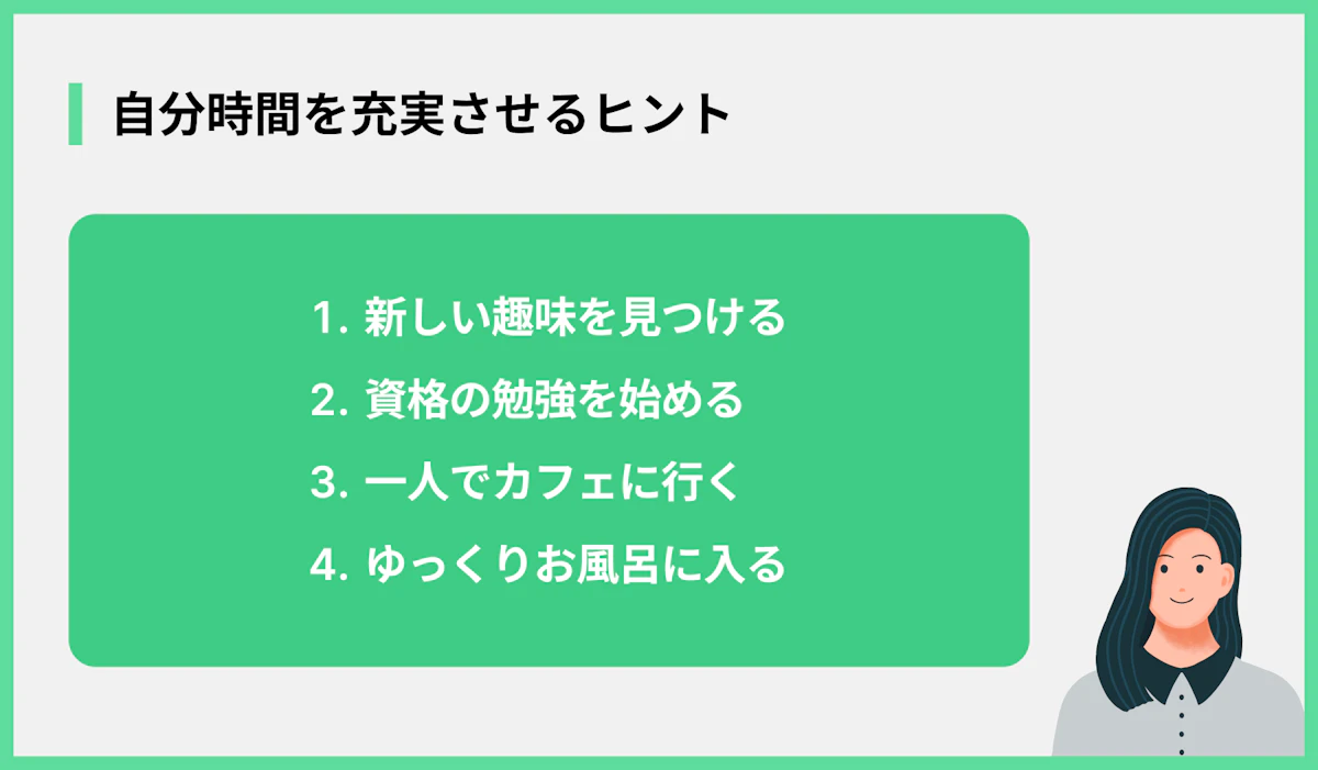 同期と過ごす時間も大切ですが、それと同じくらい一人の時間を充実させることも重要です。仕事終わりの時間や休日を、すべて同期との予定で埋める必要はありません。新しい趣味を見つけたり、資格の勉強をしたり、ただ家でゆっくり過ごしたりと、自分のために時間を使うことで、心に余裕が生まれます。精神的に自立することで、同期との関係にも良い影響を与えるでしょう。