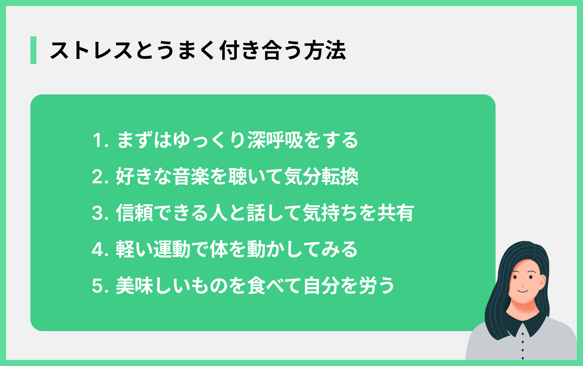 - 上手にストレスを発散する方法を見つける