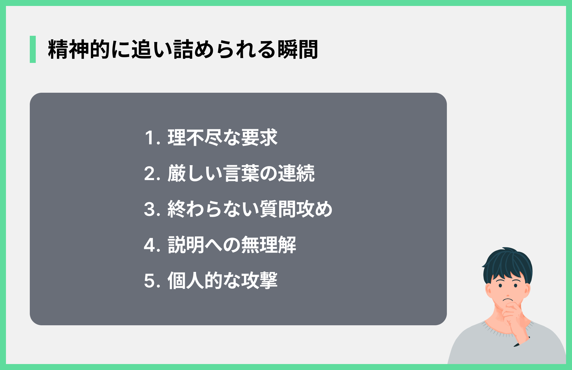 カスタマーサポートの仕事がきついと言われるのには、いくつかの理由があります。具体的には以下の5つの項目について解説します。