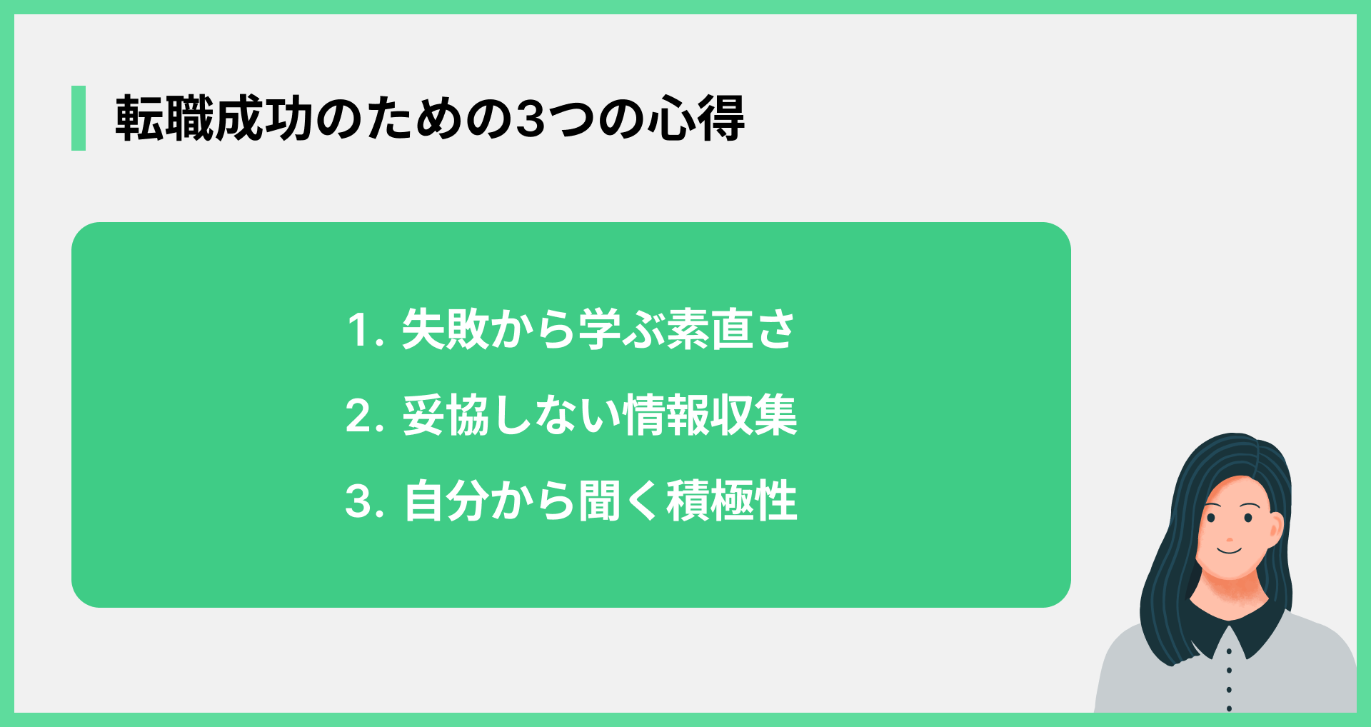 配属ミスマッチという経験をバネにして、次の転職を成功させるためには、いくつか重要なポイントがあります。意識すべきことは以下の通りです。