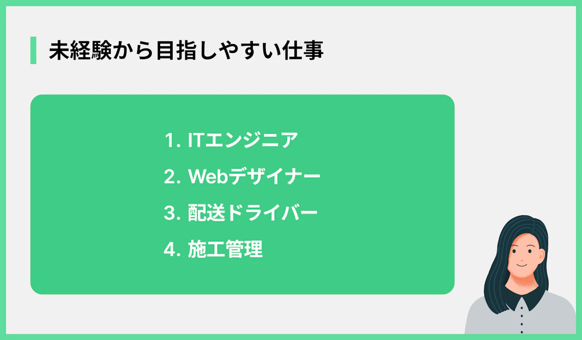 ITエンジニアは、パソコンとインターネット環境があれば場所を選ばずに仕事ができるため、リモートワークを導入している企業が多い職種です。スキルを身につければ、将来的にはフリーランスとして独立する道も開けます。未経験からでも、研修制度が充実している企業や、学習意欲を評価してくれる企業はたくさんあります。プログラミングなどの専門スキルを習得する必要はありますが、手に職をつけたい、場所にとらわれずに働きたいという人には魅力的な選択肢です。