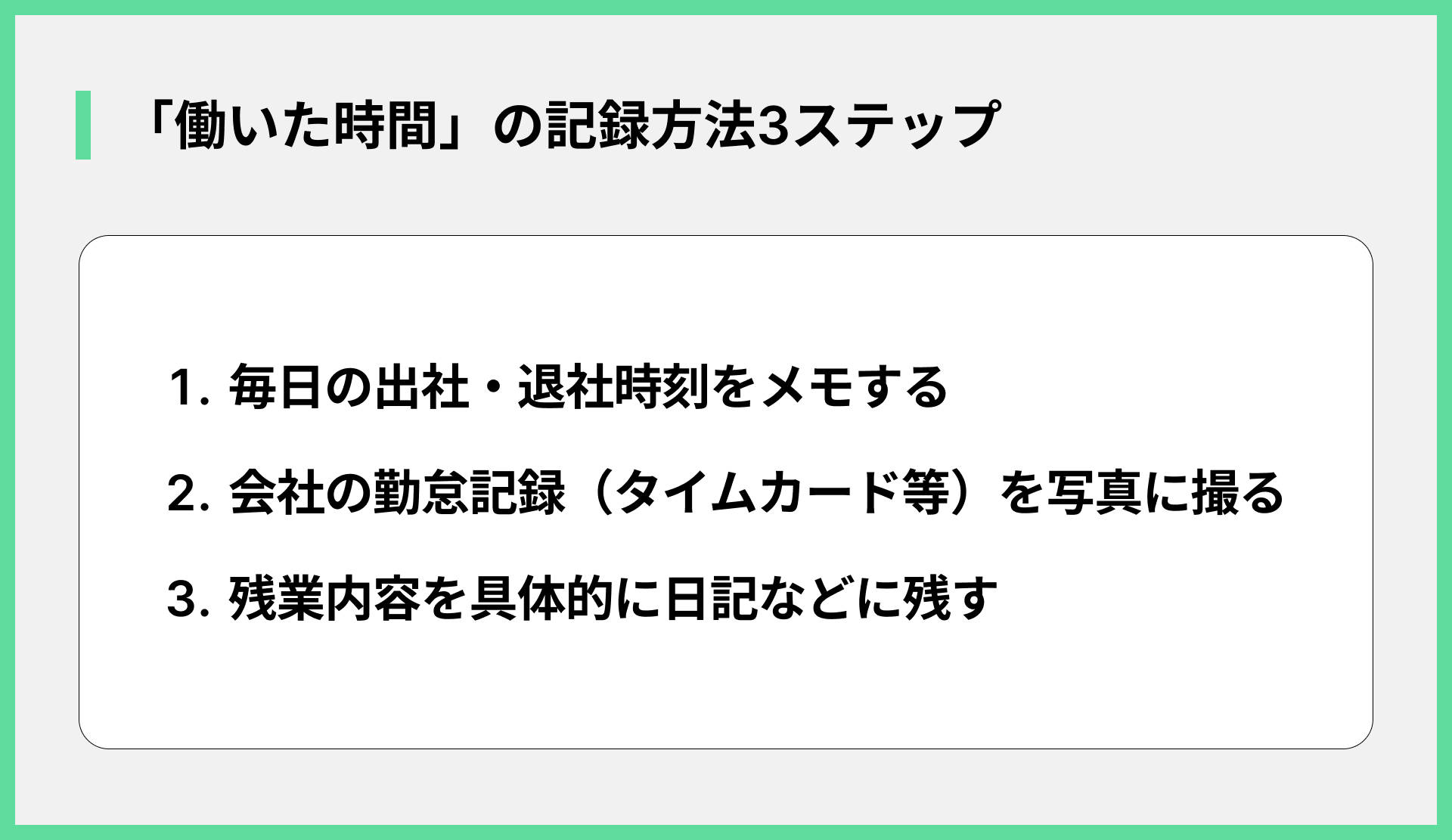 - 働いた時間の証拠を記録しておく