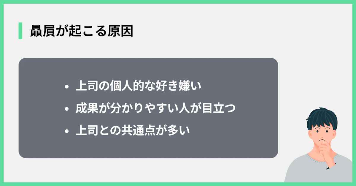 そもそも、なぜ上司は特定の人を贔屓してしまうのでしょうか。その原因は、以下の通りです。