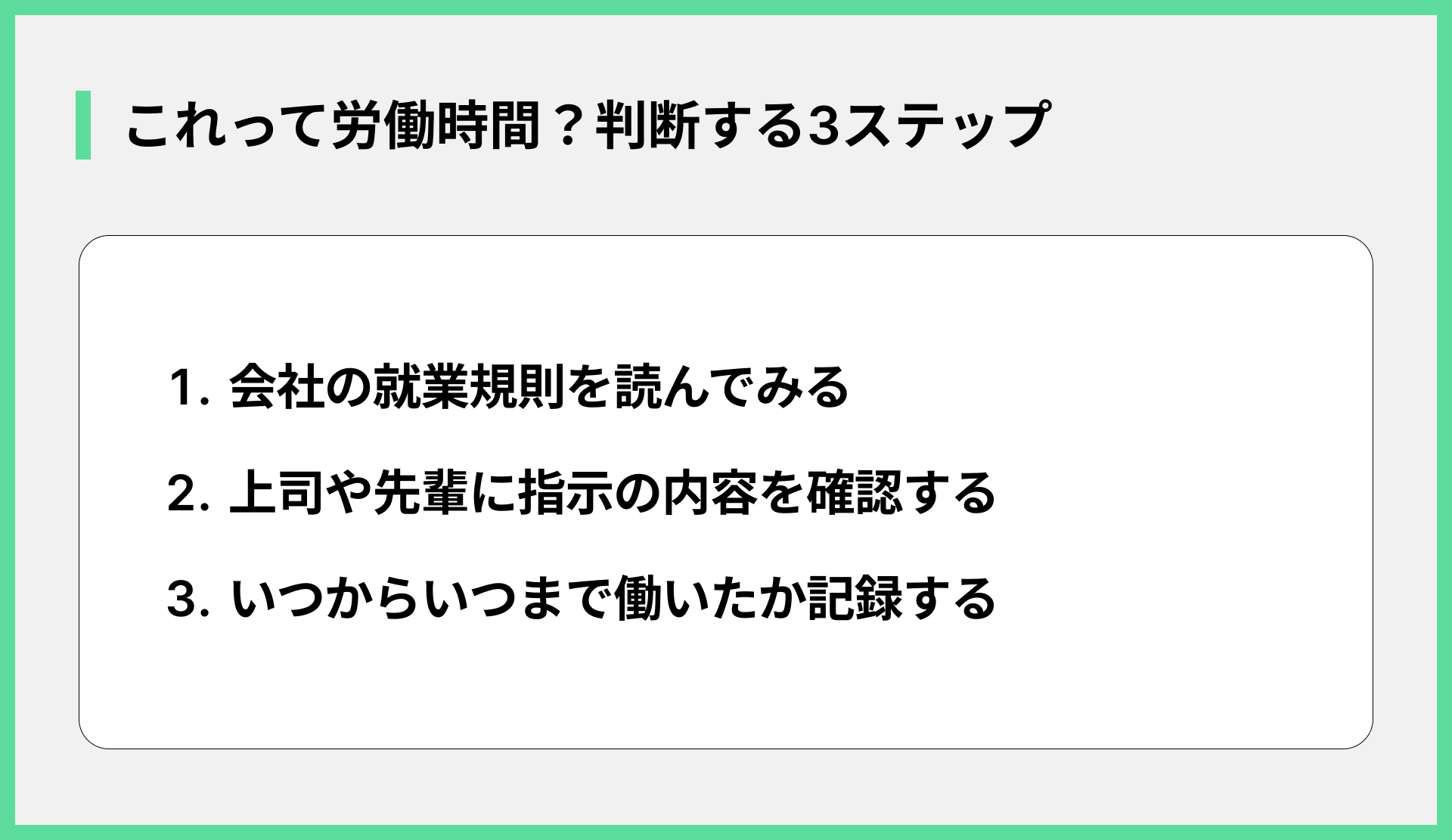 - 出退勤の時間を正確に記録しておく