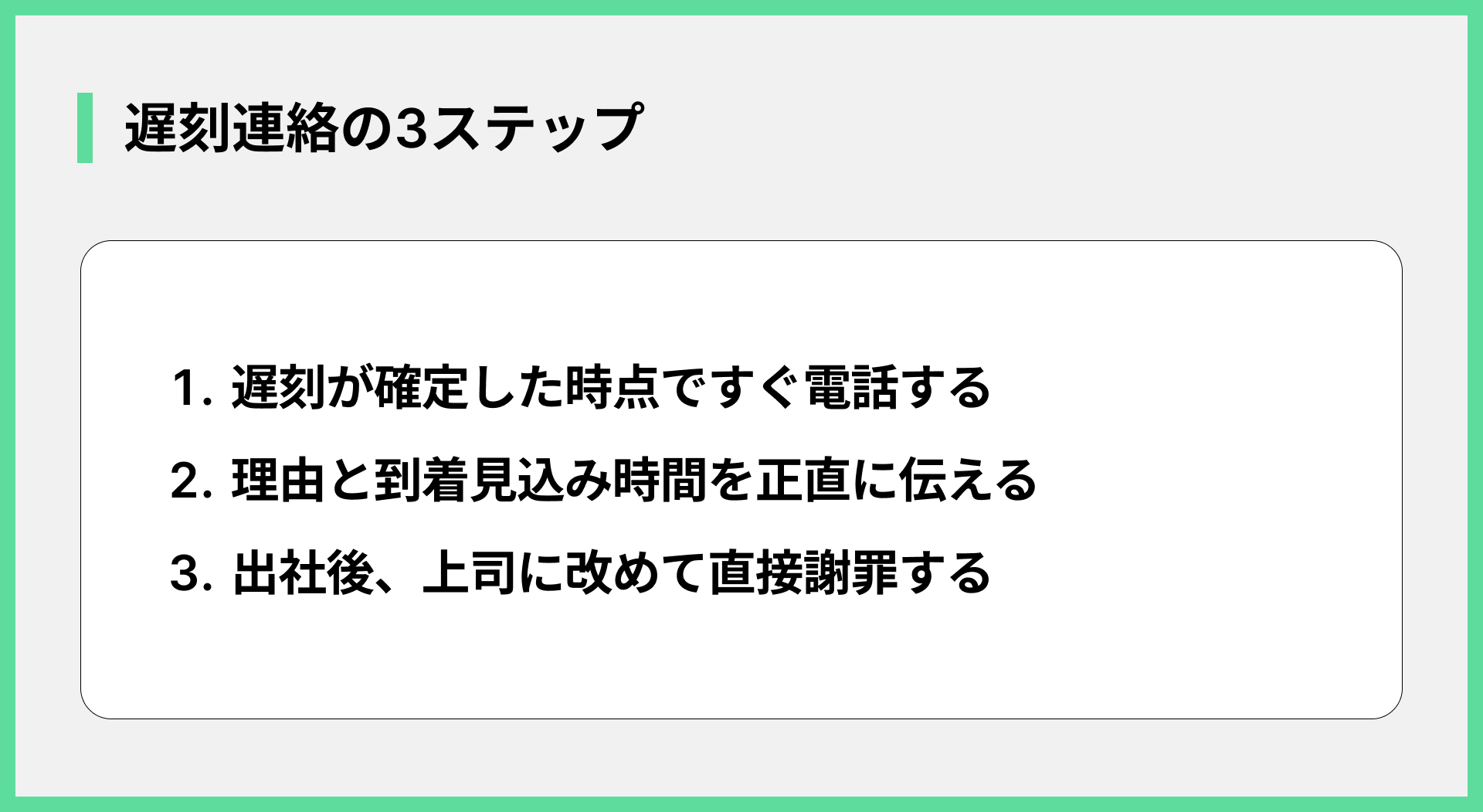 気をつけていても、予期せぬトラブルで出社時間がいつもと変わってしまうこともあります。そんな時に慌てないための具体的な対処法は、以下の通りです。