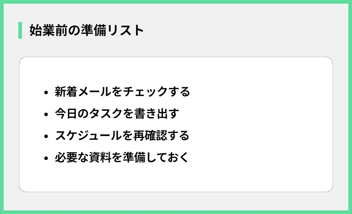 始業前の静かな時間を使えば、一日の流れを把握して、効率的に仕事を進める準備ができます。メールをチェックしたり、今日やるべきことをリストアップしたりするのに最適な時間です。誰にも話しかけられない時間だからこそ、集中してタスクの優先順位を決められます。「午前中はこの仕事から片付けて、午後は会議の資料作成に集中しよう」といった具体的な計画を立てることで、その日の仕事が格段に進めやすくなります。この朝の数分間の計画が、残業を減らし、プライベートな時間を確保することにも繋がるかもしれません。