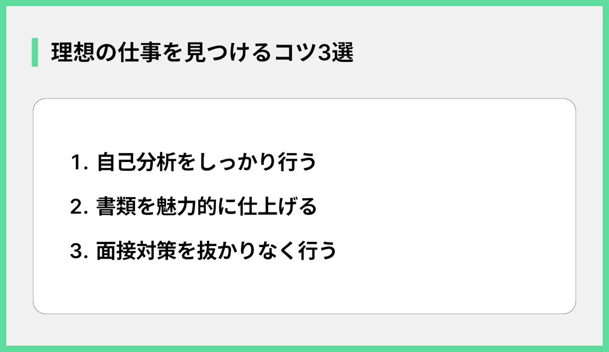 理想の仕事を見つけるための第一歩は、徹底した自己分析です。自分が何に興味を持ち、どんなことにやりがいを感じるのか、得意なことや苦手なことは何かを深く掘り下げましょう。これまでの経験を振り返り、成功体験や失敗体験から学んだことを整理することも重要です。また、将来どんな自分になりたいのか、どんな働き方をしたいのかといった価値観やキャリアプランを明確にすることで、企業選びの軸が定まります。自己分析を通じて自分の強みや適性を客観的に把握することが、自分に本当に合った仕事を見つけるための羅針盤となるのです。