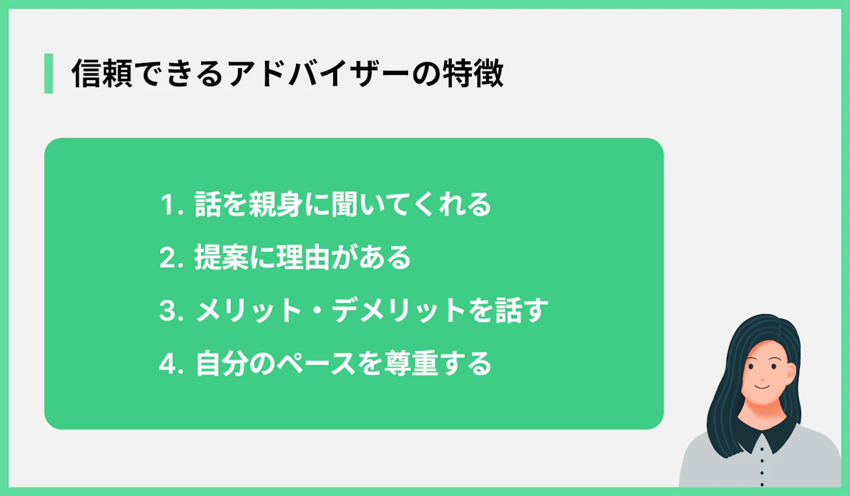 そもそも、自分に合わないキャリアアドバイザーとはどのような人なのでしょうか。断るべきか迷った時のために、合わないアドバイザーの典型的な特徴を以下の通り紹介します。