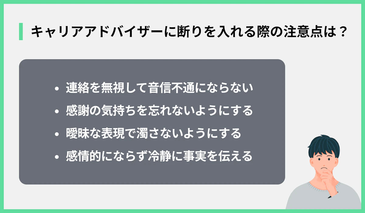 キャリアアドバイザーに断りを入れる際の注意点は?