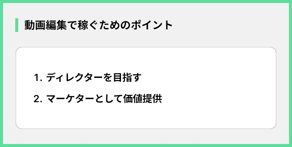 動画編集領域で高い付加価値を提供するためには、本業でマーケティングの仕事をするのがおすすめ