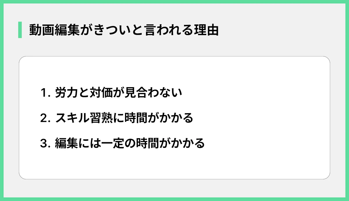編集ツールや生成AIの台頭で動画編集のスキル自体が陳腐化する可能性がある