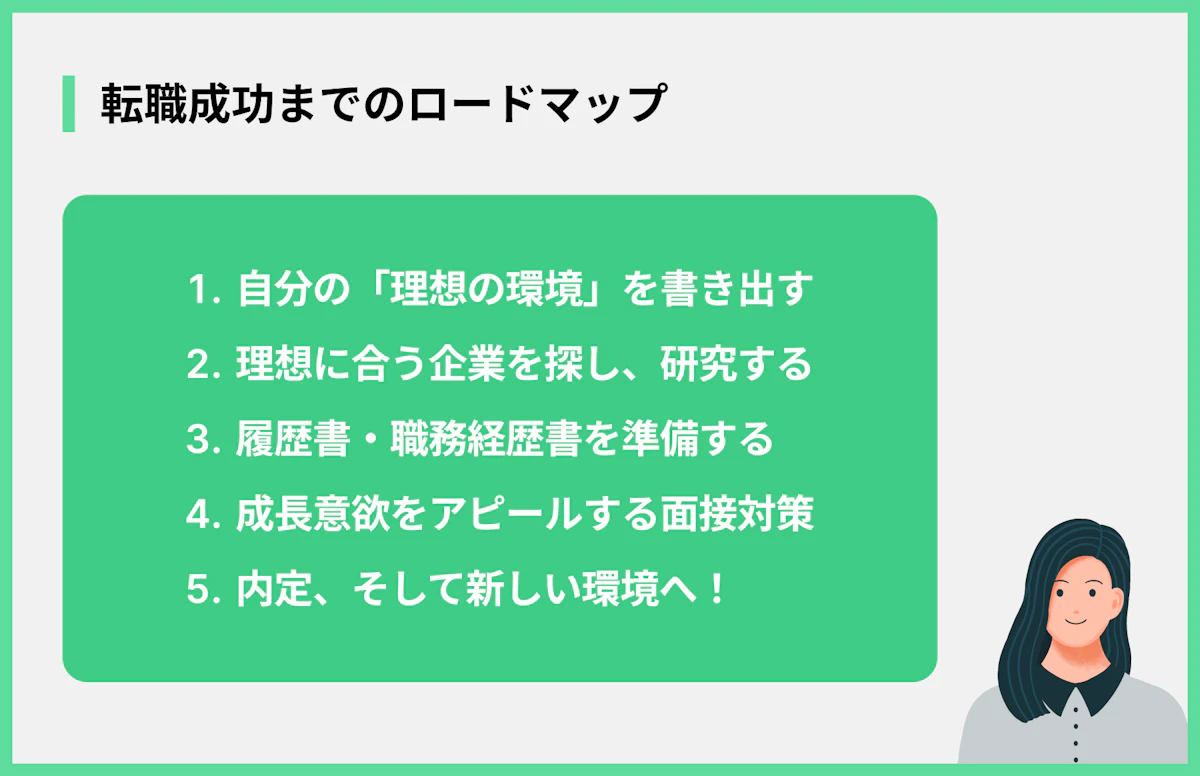 転職のメリット・デメリットを理解した上で、「やはり挑戦したい」と決めたなら、成功に向けてしっかりと準備を進めましょう。転職を成功させるためのコツは、以下の通りです。
