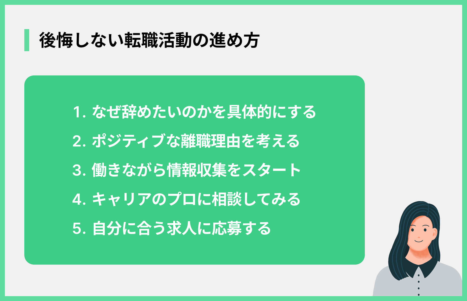 - なぜ辞めたいのかをはっきりさせる