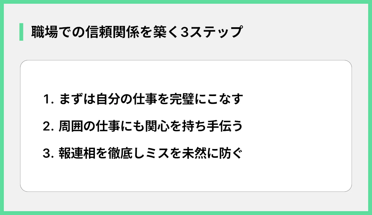 まずは、仕事でしっかりと成果を出すことが一番の近道です。性別に関係なく、任された仕事に責任を持って取り組み、成果を出すことで、周りからの見る目は確実に変わります。「〇〇さんは仕事ができる」という信頼を得られれば、一人の戦力として認められ、コミュニケーションも円滑になるでしょう。分からないことは積極的に質問し、新しい仕事にも意欲的にチャレンジする姿勢を見せることが大切です。