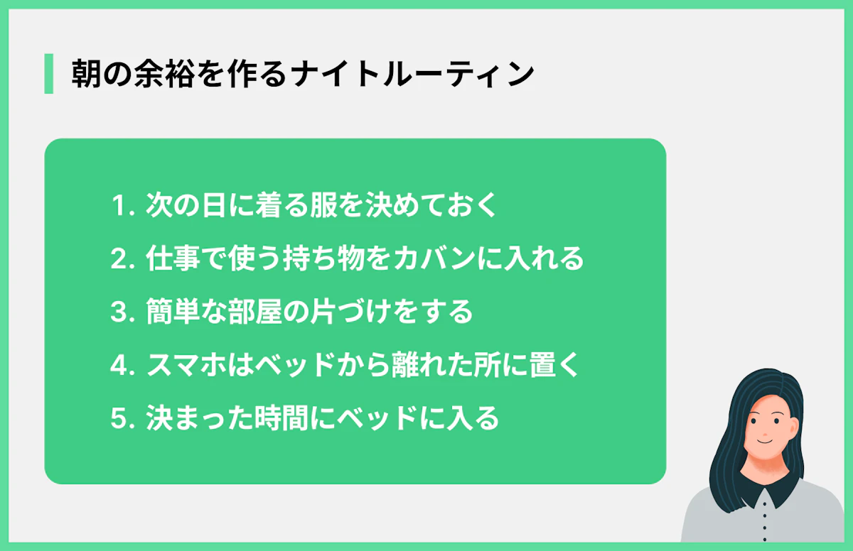 ギリギリの出社をやめたいと思っても、何から手をつければいいか分からないかもしれません。ここでは、明日からすぐに試せる具体的な改善方法を紹介します。