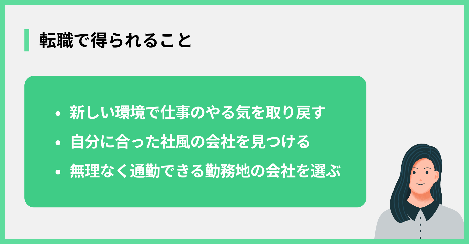 環境が変われば、気持ちも行動も大きく変わる可能性があります。転職のメリットを詳しく見ていきましょう。